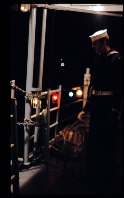 Terry and I had married on March 28th, 1970, and we were celebrating our first Christmas separated by thousands of miles of open ocean. I didn’t even have money for a trans-Atlantic phone call. I was the duty corpsman on board the ship waiting for the predictable influx of slightly - heavily inebriated sailors and marines. Feeling at loose ends and missing home very much, I took my trusty Yashica camera and snapped this picture of a young sailor who was probably sharing my misery but was very much on guard to protect his fellow sailors and marines from harm.